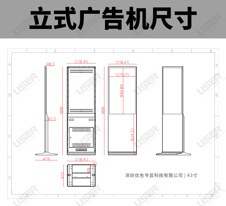 菜单产品中心Product center 液晶广告机 壁挂式广告机 落地立式广告机 电梯超薄广告机 车载广告机 高亮广告机 户外广告机 液晶拼接屏 专业液晶拼接屏 4K液晶拼接屏 广告拼接屏 无缝液晶拼接屏 触摸液晶拼接屏 LED显示屏 触控一体机 壁挂式触控一体机 立式触控一体机 斜面触控一体机 智能家居触控一体机 户外触控一体机 液晶电子白板 教育电子白板 会议电子白板 工控一体机 触摸显示器 红外触摸显示器 电容触摸显示器 电阻触摸显示器 声波触摸显示器 纳米触摸显示器 液晶监视器 专业级监视器 4K监视器 嵌入式监视器 机架式监视器 开放式监视器 SDI监视器 高亮监视器 广播级监视器 工业显示器 4K显示器 机架式显示器 开放式显示器 医疗显示器 KVM显示器 指挥室显示器 智慧校园产品 专业定制商显 多屏广告机 多功能触控一体机 多功能广告机 微信打印广告机 魔镜广告机 透明广告机 全息广告机 条形屏广告机 旋转广告机 裸眼3D广告机 人工智能产品 显示配套设备 拼接配套设备 广告机播放盒 OPS播放盒 拼接支架 移动支架 相关软件 吊顶支架 线材 木架 蜂窝箱 桌面底座 热门产品 →优色3.5mm超窄边46寸液晶拼接屏→优色49寸3.5mm超窄边液晶拼接屏→优色3.5mm超窄边55寸液晶拼接屏 您的位置:首页 → 公司产品 → 液晶广告机 → 落地立式广告机 43寸立式落地广告机类别:落地立式广告机 简介:产品概述: 高清:采用高清16:9全视角LCD显示屏,分辨率为1920*1080 超薄:工业级外观,设计合理,稳固结实,最薄处28.3mm 工艺:铝合金氧化拉丝边框,机身采用金属喷涂的五金冷轧钢板,... 在线咨询 返回列表 产品说明 相关产品 65寸落地立式广告机 55寸立式广告机 50寸立式落地广告机 43寸立式落地广告机 43寸46寸49寸55寸65寸86寸仿苹果款立式广告机 55寸超薄立式广告机